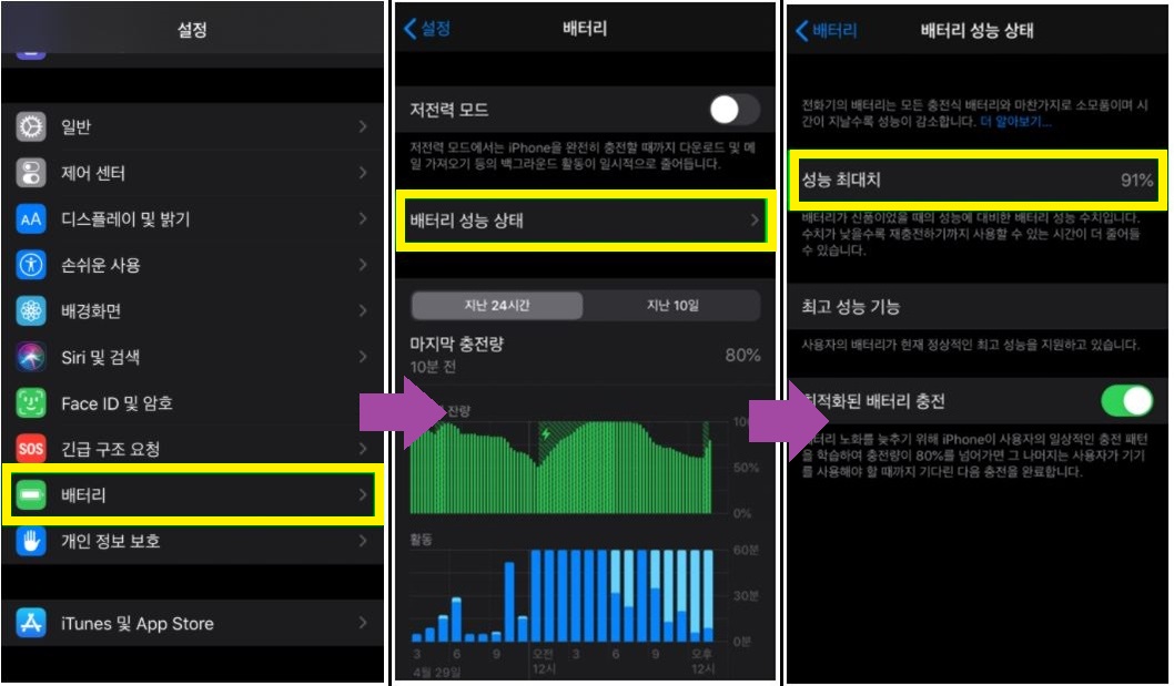 아이폰 배터리 잔량 셀프 확인 방법과 아이폰 배터리 교체비용에 대해 알아보겠습니다.