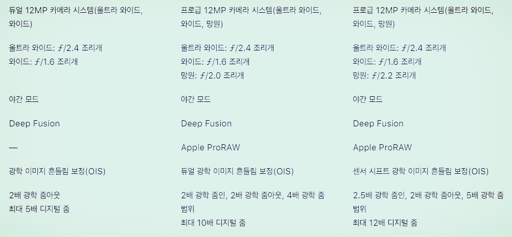 IPhone 12 카메라 비교(12 vs 12 Pro vs 12 Pro Max)