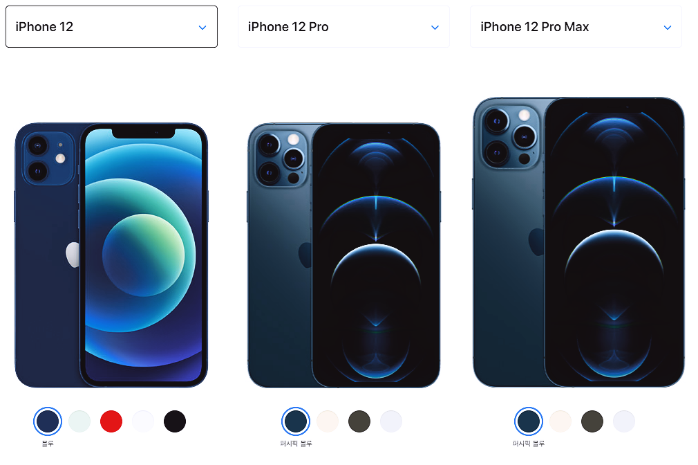 IPhone 12 색상 비교(12 vs 12 Pro/Pro Max)