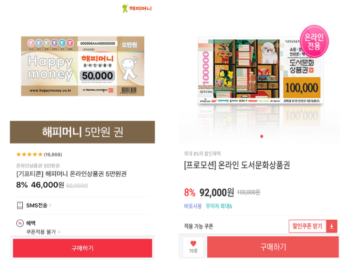 품절 전에 빠르게 온라인 문화 상품권 딜 구매가 가능합니다.