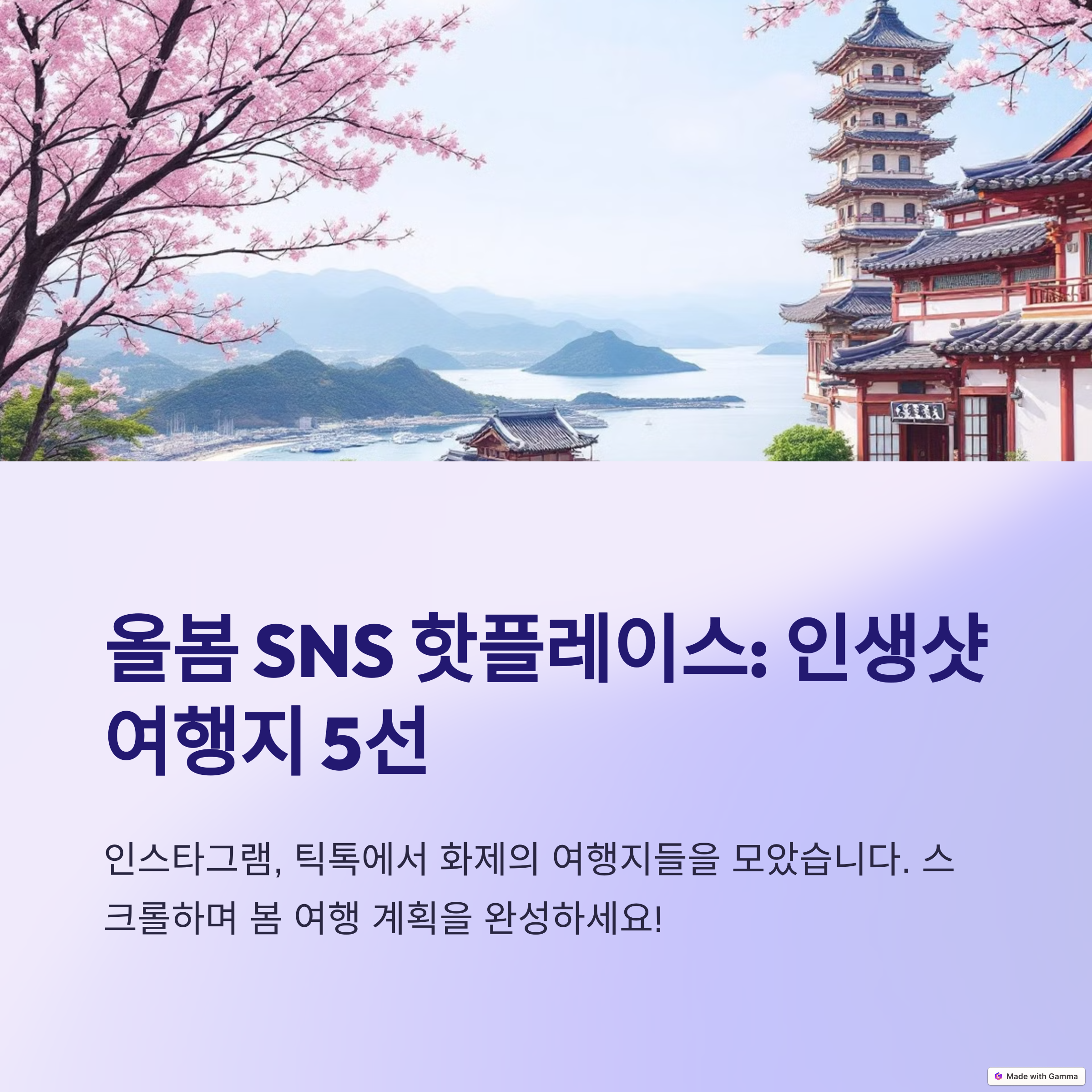 올봄, SNS에서 핫한 여행지는 어디일까요? 사진 찍기 좋은 감성 여행지부터 숨겨진 명소까지, 인스타그램 피드를 장식할 최고의 여행지를 소개합니다!