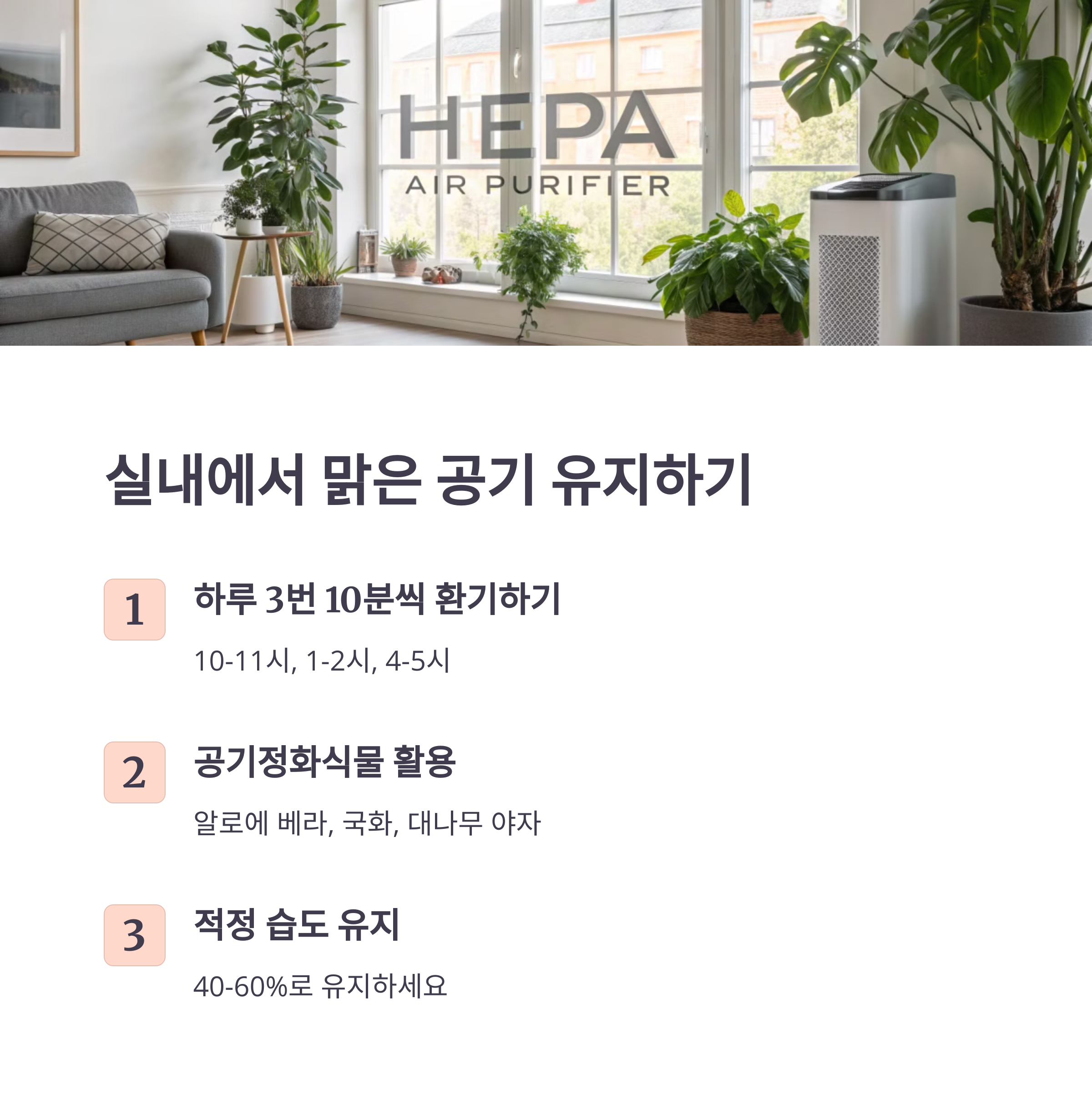 | 공기청정기 사용 | 미세먼지와 유해물질 제거 |