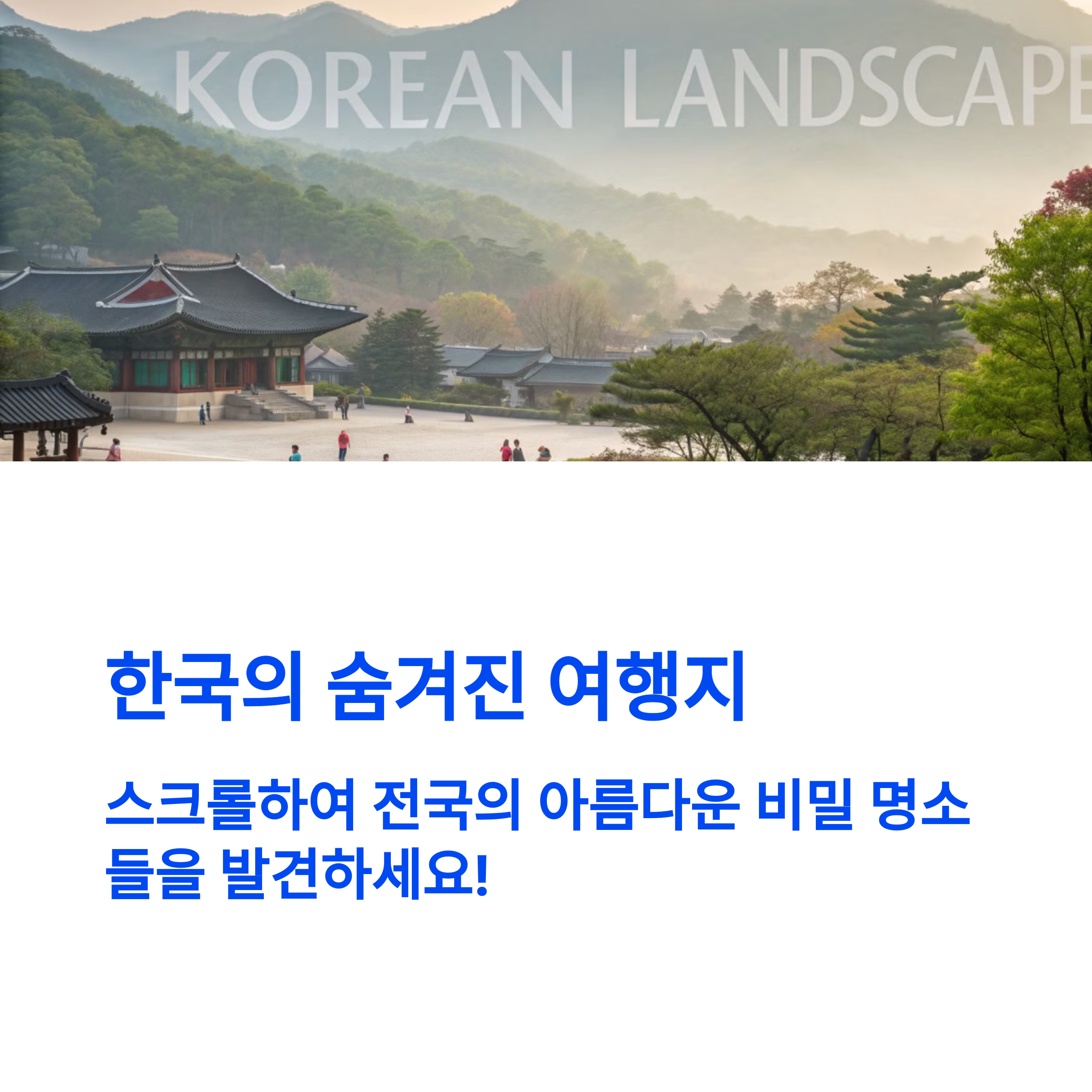 안녕하세요, 여행을 사랑하는 여러분! 요즘 유명 관광지를 가면 사람이 너무 많아 정작 제대로 된 여행을 즐기기가 어렵죠? 저도 얼마 전 유명 명소에 갔다가 인파에 치여 돌아온 적이 있어요. 그래서 이번에는 진짜 아는 사람만 가는 국내 숨은 명소를 소개하려고 합니다. 아직 많이 알려지지 않아 한적하게 즐길 수 있는 아름다운 여행지들, 함께 떠나볼까요?