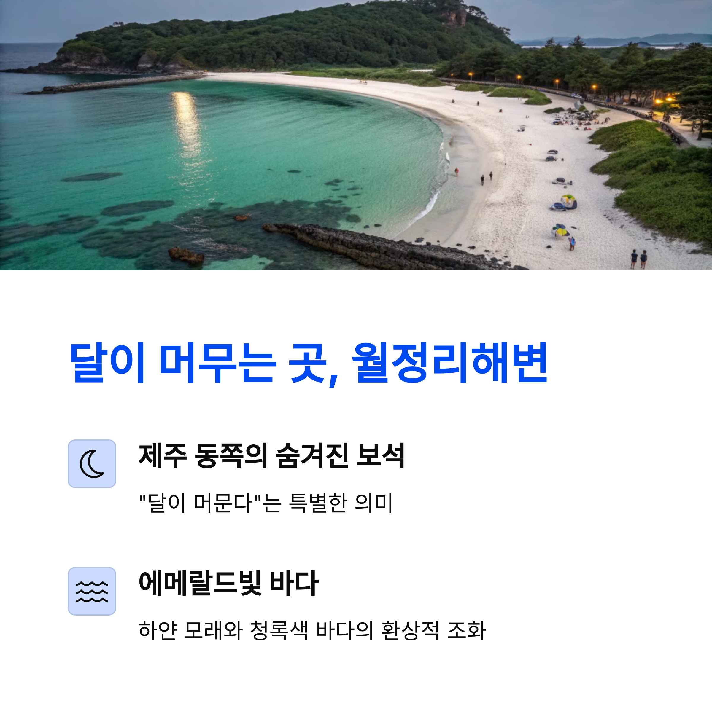 제주도에는 유명한 해수욕장 외에도 상대적으로 덜 알려진 조용한 해변이 많습니다. 에메랄드빛 바다를 감상하며 힐링해 보세요.