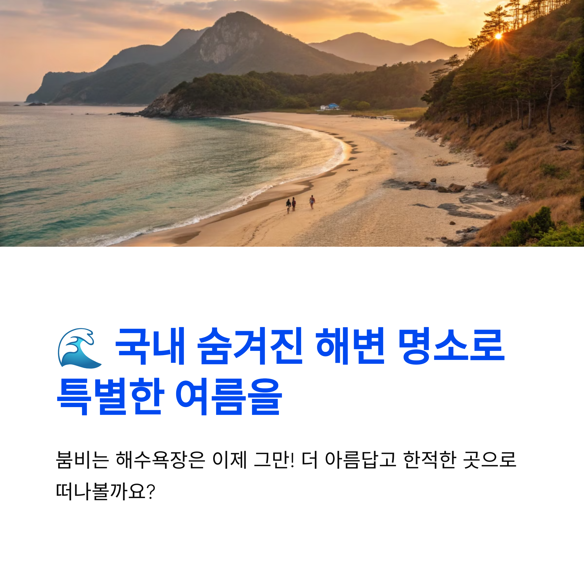 안녕하세요, 여행을 사랑하는 여러분! 본격적인 여름이 다가오면서 많은 분들이 해변으로 떠날 계획을 세우고 계실 텐데요. 하지만 유명 해수욕장들은 사람들로 붐비고, 제대로 된 휴식을 즐기기 어려울 때가 많죠. 다행히도, 우리나라에는 여전히 숨겨진 해변 명소들이 많습니다.