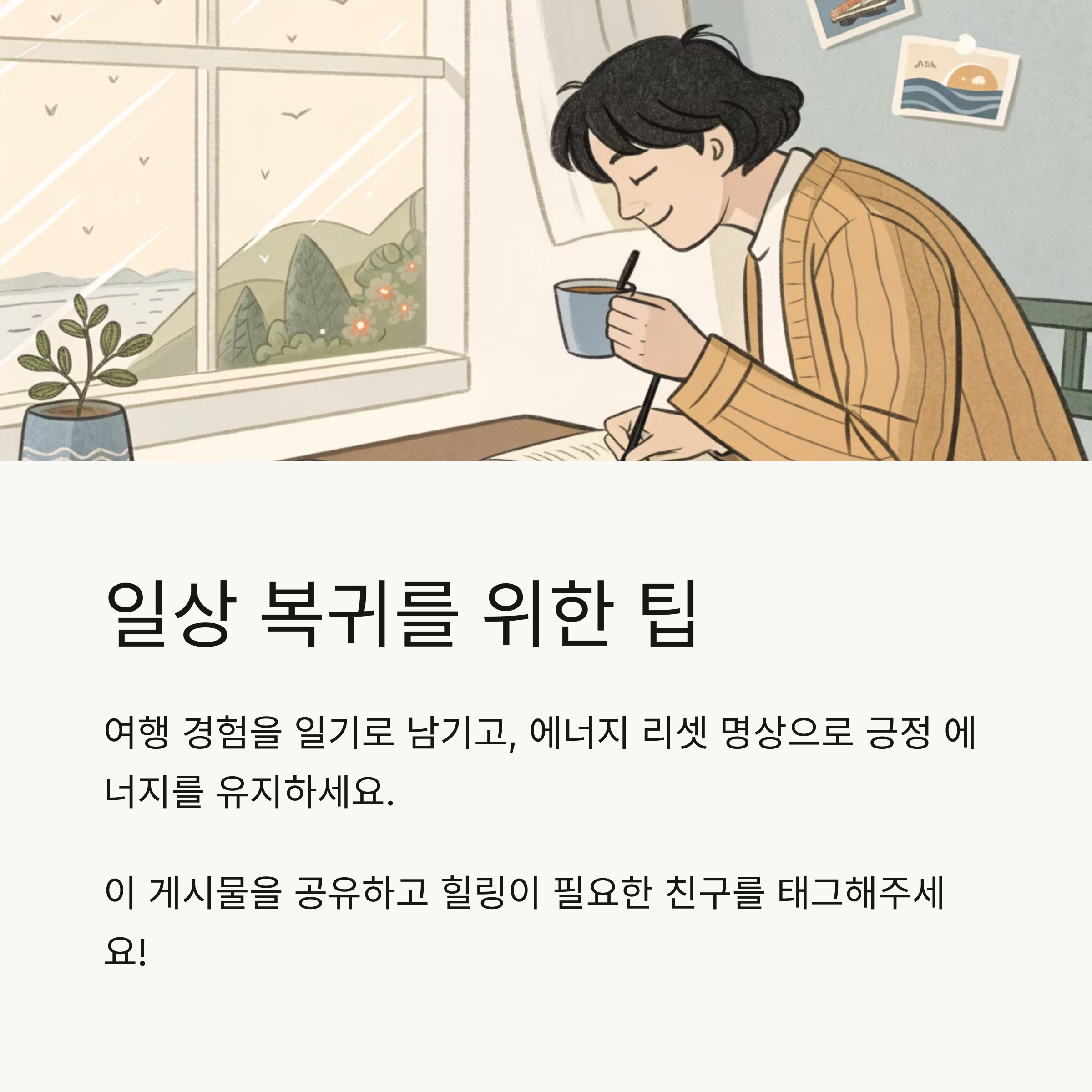 여행은 좋았는데 다시 일상으로 돌아오려니 괜히 허무하고 아쉽지? 그런 감정도 자연스러운 거야. 아래 팁으로 부드럽게 전환해보자.